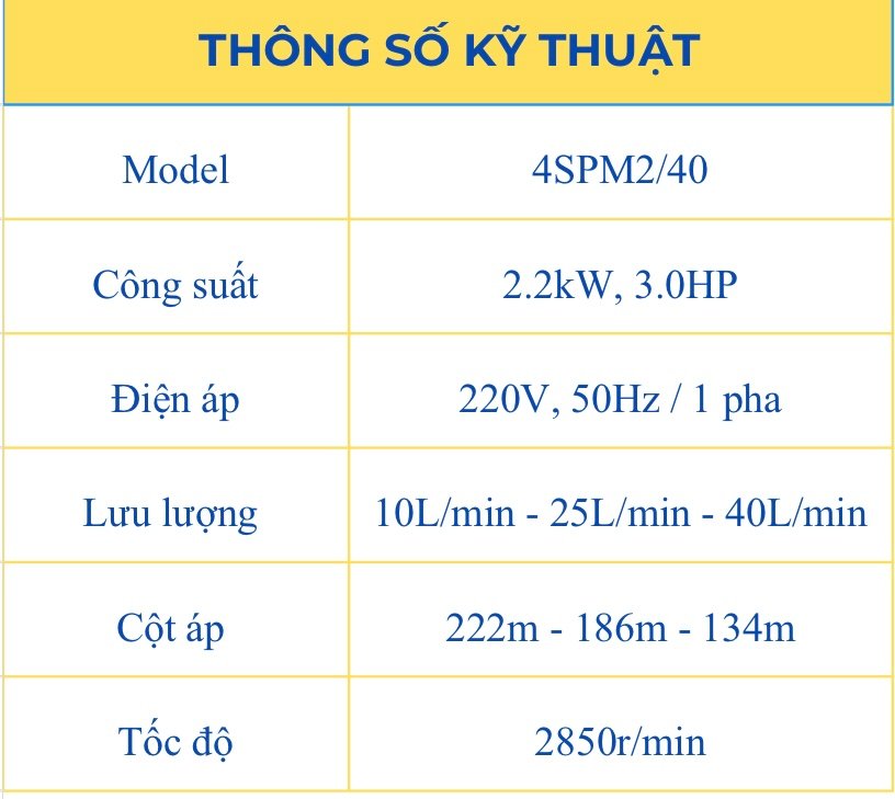 • Cột áp cao, tiết kiệm điện năng.